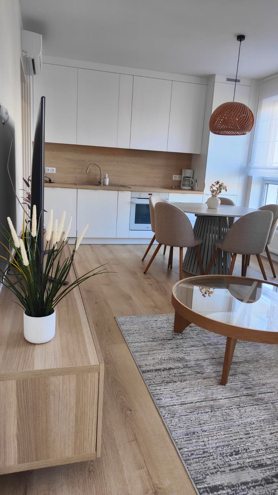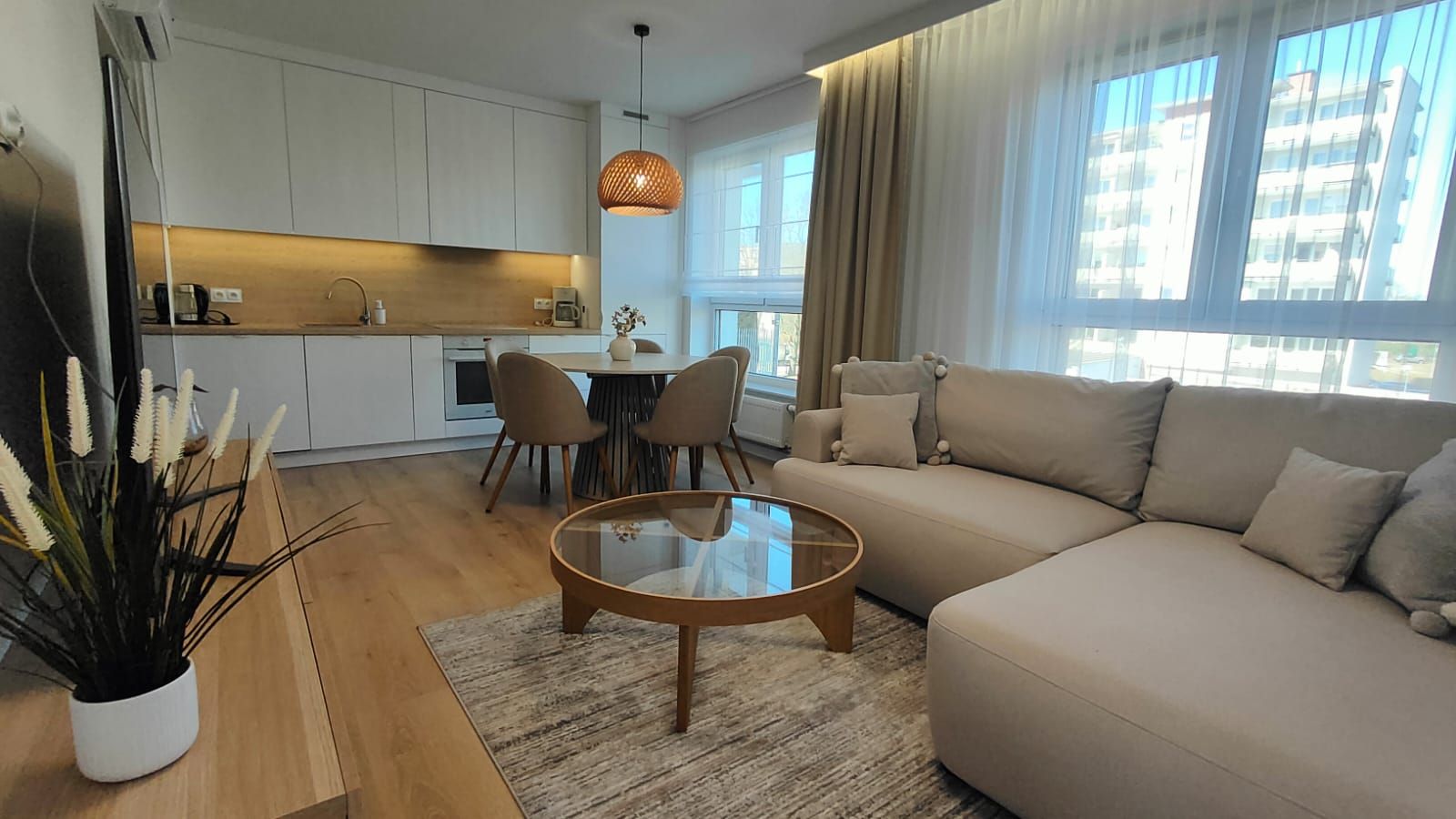 Apartament urządzony jest w nowoczesnym stylu, z dbałością o detale i funkcjonalność, dzięki czemu poczujesz się tu jak w domu.